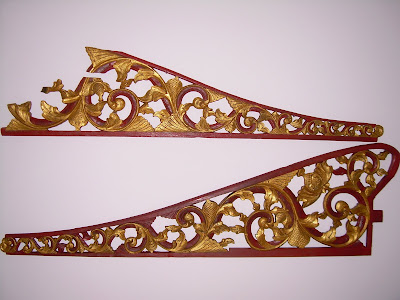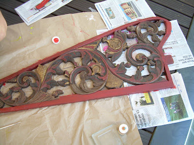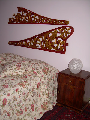 Também num antiquário, encontrámos as talhas de madeira, que restaurei na varanda dos donos da casa.